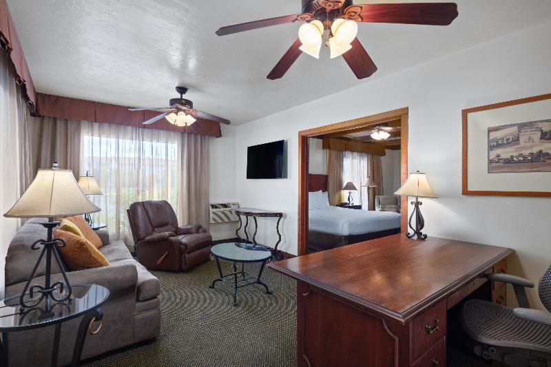High-speed internet, mini-fridge, microwave, self-controlled temperature, shower, coffee/tea maker, hair dryer, 2 HDTVs, bathroom amenities, alarm clock, large desk, Direct TV, iron, pillow-top mattress, safe. 55"HDTV in the room with the king size bed and 50" HDTV in the room with the queen size bed
